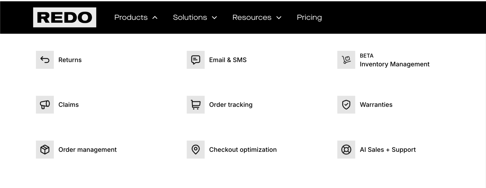 - Product record. Owning the product record means you have clear visibility into every product a merchant offers, which helps the merchant sell more. For example, how often is product A returned vs product B? How many support tickets come in through product A vs Product B? How often does product A sell at full price, vs discount? This allows Redo’s AI to create an inventory management system (IMS) that gives a merchant dramatically more confidence in what inventory to buy, and how to price it.